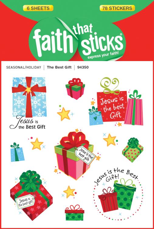 These foil-trimmed, colorful stickers are a bright and shiny way to explain to kids the important Christmas truth that Jesus is the best gift. Each sheet includes five larger stickers (1″-1 ” x 1 “) with the Best Gift saying, plus eight smaller wrapped present and star stickers. Great for decorating and crafts. Six sheets, 13 stickers per sheet; 78 stickers per package.