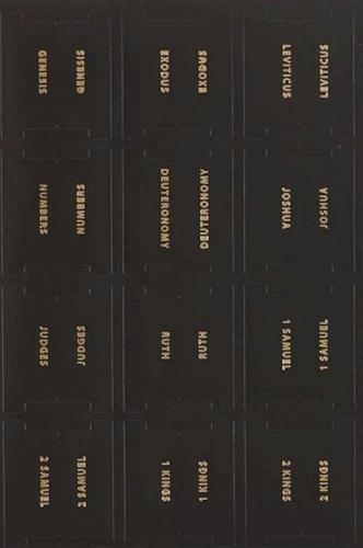 The names of the Bible books are foiled in gold on the black Bible indexing tabs.