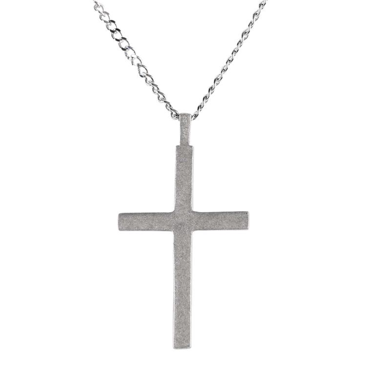 Pewter Box Cross necklace on 24 inch Stainless Steel Chain
