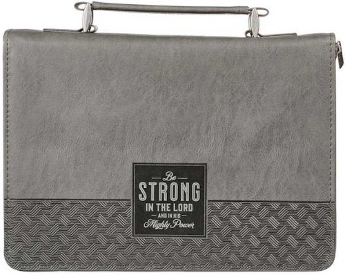 The Be Strong in the LORD Gray and Black Faux Leather Classic Bible Cover is the perfect Bible case to protect your son’s Bible. With its bold call to stand firm in the faith and a nudge to put on the full armor of God~ this Bible cover will encourage your son to stand for truth.”