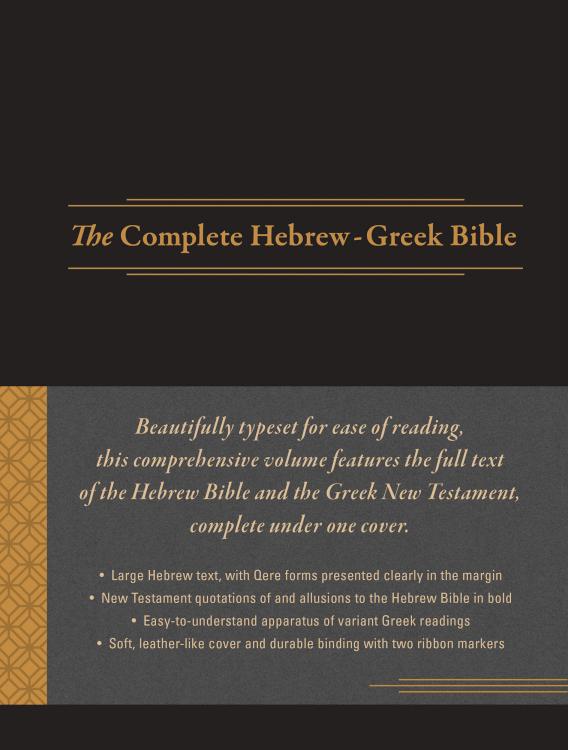 Hendrickson’s The Complete Hebrew-Greek Bible combines under one cover the complete text of the Hebrew Bible and the Greek New Testament. Ideal for pastors, students, scholars, and anyone else who has studied both Greek and Hebrew, this is an excellent volume for those who want a complete original-language Bible in an attractive package and at an affordable price.