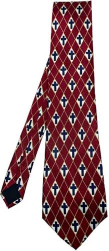 Features a unique pattern of Crosses in Diamond Shapes in shades of Blue and White on a Burgundy Tie. Stylized and ready for everyday wear, and makes a great conversation starter. Comes polybagged in a sleeve with a hanger, ready for retail presentation or giving as a gift on Father’s Day, Christmas, birthdays, or just because!