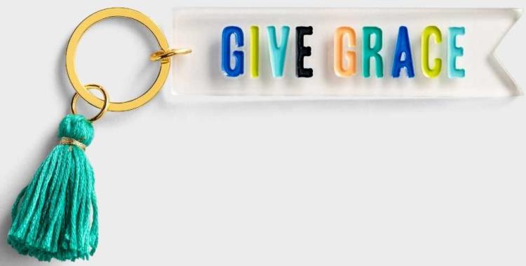 Acrylic letters spell out Give Grace