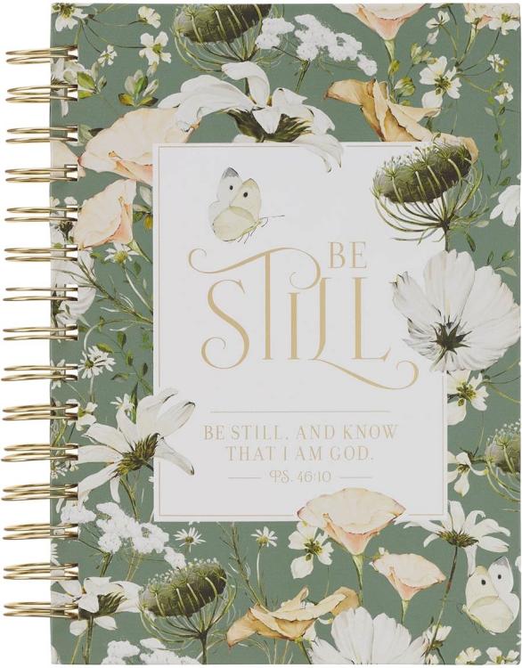 Find rest for your soul as you journal on the pages of the Be Still Sage Blossom Spiral Journal.