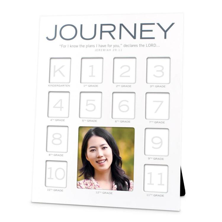 Features: holds 12 small photos for grades K – 11 and one larger photo for grade 12, easel back, wall-hanging option