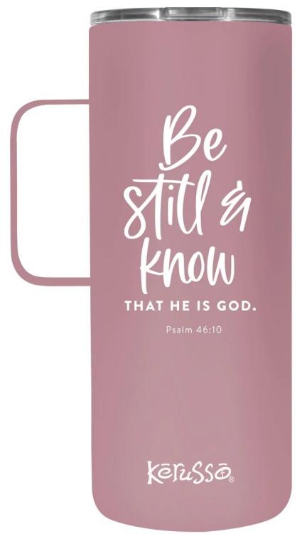 Embrace the peace that can only be found in a relationship with Jesus with this Be Still And Know Kerusso 22 oz. Stainless Steel Mug with Handle in Mauve. We serve a mighty God who created the mountains, the depths of the ocean, the sky itself, and every living thing…and amidst this splendor, He wants to know you personally. What a beautiful truth to hang on to. This contemporary handled mug is designed to fit most car cup holders, is sweat-free, and keeps drinks piping hot or ice-cold for hours. It s a practical vessel for home, work, or the car.