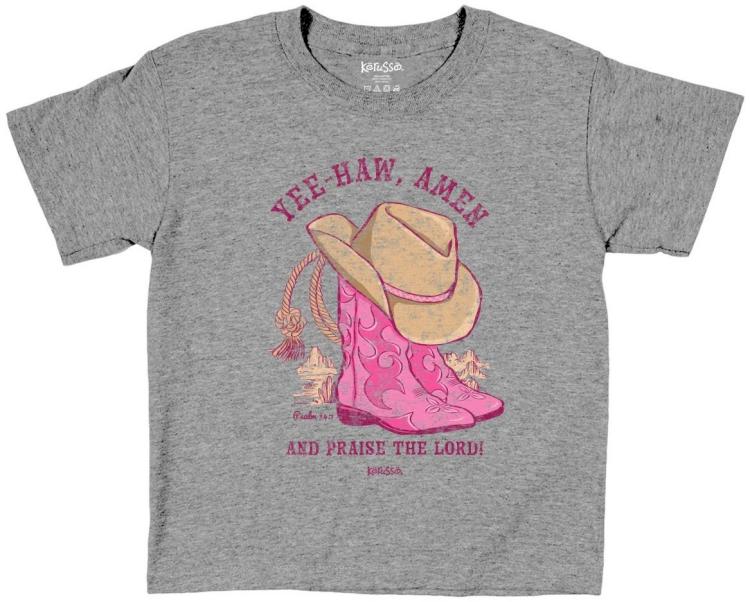Giddyup girls! Encourage her to praise the Lord in this kickin Yee Haw T-shirt by Kerusso Kidz in Sport Grey. On sunny days and when it rains, we can praise the name of the Lord, who gives us so much to be grateful for.