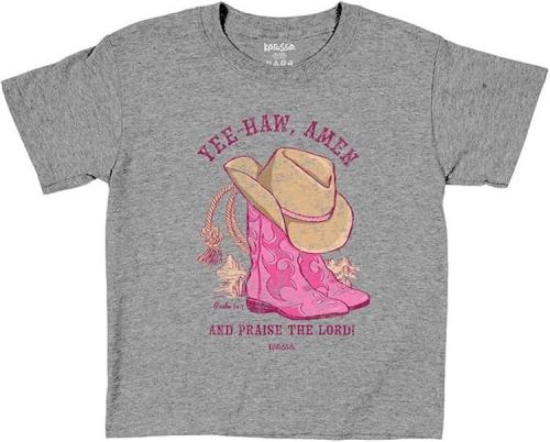 Giddyup girls! Encourage her to praise the Lord in this kickin’ “Yee Haw” T-shirt by Kerusso(R) Kidz in Sport Grey. On sunny days and when it rains, we can praise the name of the Lord, who gives us so much to be grateful for.