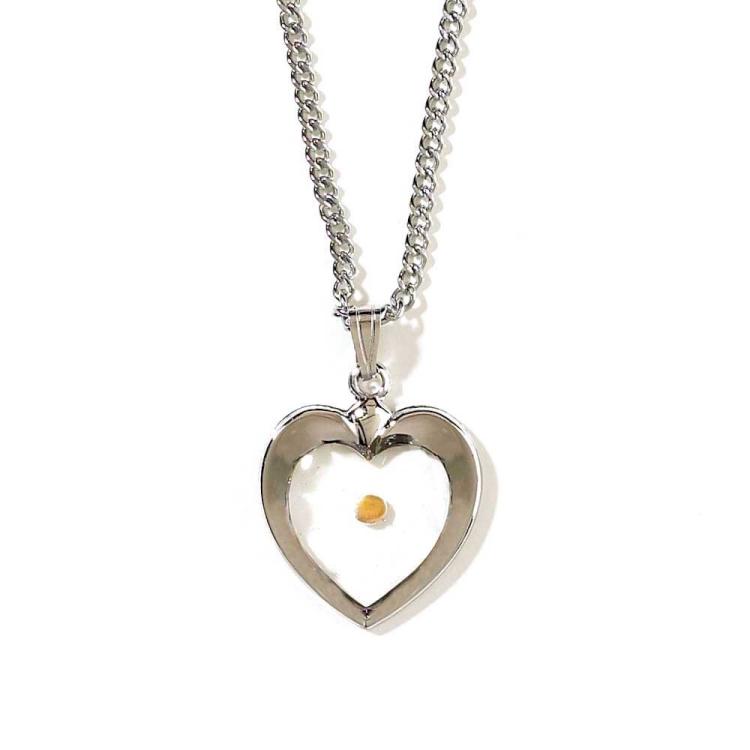 Faith even the size of a mustard seed can move mountains. Remember Jesus’ words in Matthew 17:20 whenever you wear this necklace that holds a real mustard seed. Silver plated 5/8″” open heart pendant has clear acrylic center surrounding the seed; the silver plated chain is 18″”. Necklace comes in a deluxe black gift box.