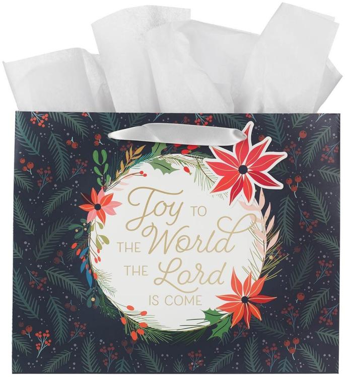 Deliver handmade joy in the form of Christmas cookies in the Joy to the World Midnight Blue Large Landscape Gift Bag. This festive bag is a herald of the Christmas spirit!