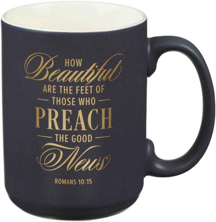 Show your appreciation for all your pastors do by giving the Beautiful Are the Feet Navy Ceramic Coffee Mug as a pastor appreciation gift to the leaders in your church or congregation. This thoughtful gift will express your gratitude and recognize their dedication and service.