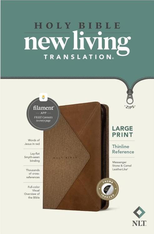 The Bible Reading Experience: ReimaginedThe new Tyndale classic NLT Large Print Thinline Reference Bible, Filament-Enabled Edition has readable text, an attractive layout, and cross-references in a thin, easy-to-carry size. And while it has the same low price as basic text-only Bibles, the NLT Large Print Thinline Reference offers much more. It not only features a bold new design and the trusted and much-loved New Living Translation (NLT) but also includes the groundbreaking Filament Bible app. This app enables you to use your mobile phone or tablet to connect every page to a vast array of related content, including study notes, devotionals, interactive maps, informative videos, and worship music.The Filament Bible app turns this Bible into a powerful study and devotional experience, offering more to expand your mind and touch your heart than you can possibly hold in your hand.And there is no additional cost for the Filament Bible app. No additional purchase. No additional size or weight.Of course, you can use this Bible without the app, but when you want to dig deeper, grab your phone or tablet and open the Filament Bible app. It’s so easy to use.Features:New designs and Filament content for each page!Readable large printHandy thin sizeWords of Jesus in redThousands of cross-referencesQuality lay-flat Smyth-sewn bindingTyndale Verse FinderPresentation pageRibbon markerGilded page edgesFilament Bible app with free access to:25,000 study notes350+ videos40+ maps and infographics400+ profiles and articles1,500+ devotionalsLibrary of worship music