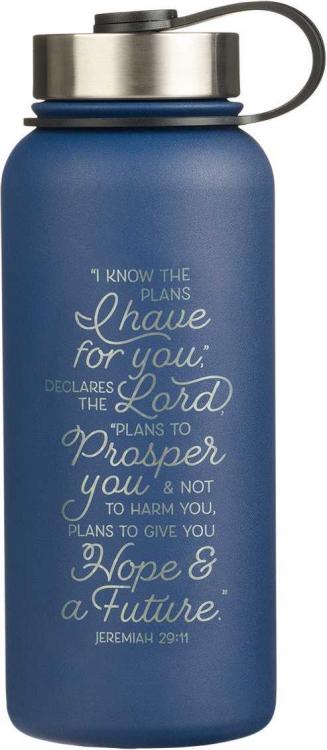 Send a graduate off in the world with the I Know the Plan Blue Stainless Steel Water Bottle and know you have given a gift that will not only quench his thirst for water but also remind him who can satisfy his spiritual thirst.