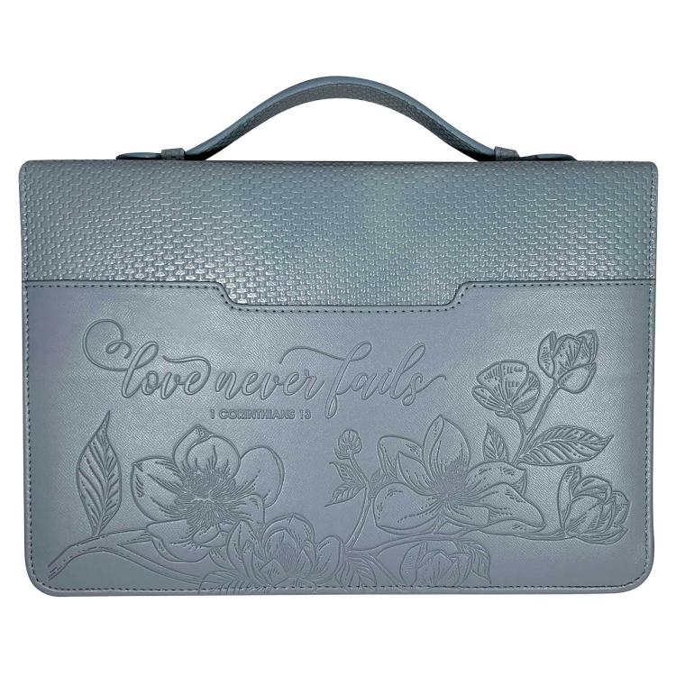 Bible Cover-Debossed w/Weave Pattern-Love Never Fails-Purple-XLG