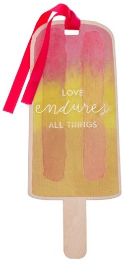 Be reminded of summertime year-round when you use the Love Endures Colorful Popsicle Wood Bookmark. With its scripturally inspired message~ this bookmark is an edifying way to mark your page.