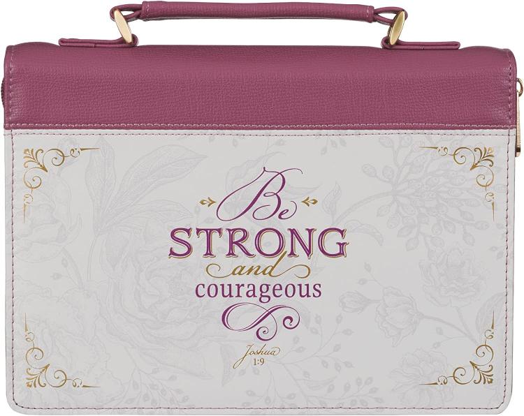 Let the quality construction of the Strong and Courageous Topas Pink Faux Leather Fashion Bible Cover protect your Bible as its message inspire you to act—with God by your side you can climb any mountain or face any battle.