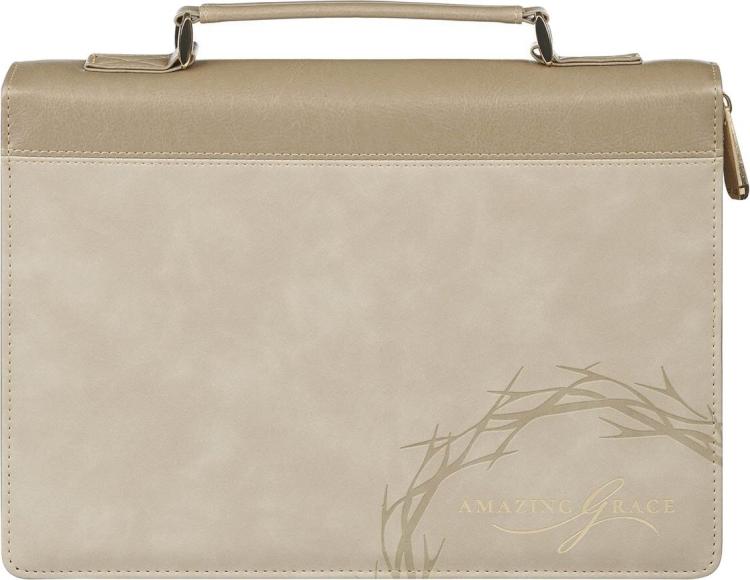 Protect your Bible with this elegant Amazing Grace Taupe Crown of Thorns Faux Leather Fashion Bible Cover and let its design encourage you that through His stripes, we are healed
