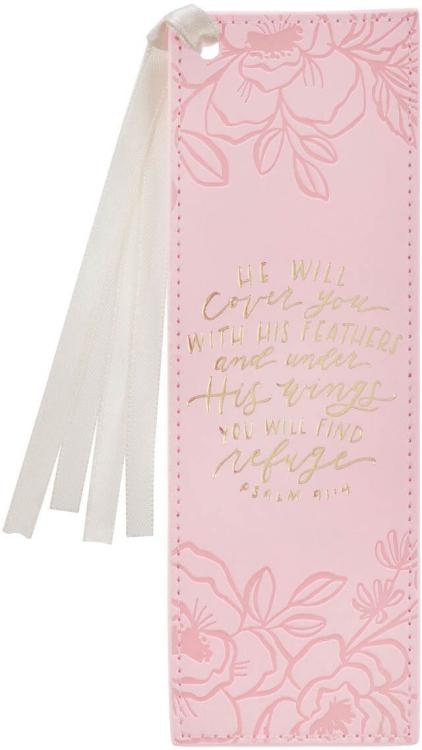 Let the comforting words of the Under His Wings Pink Faux Leather Bookmark envelop you like a warm blanket whenever you open a book and see it. The assurance that God cares and protects you in such a beautiful way will bring you a sense of security and comfort.