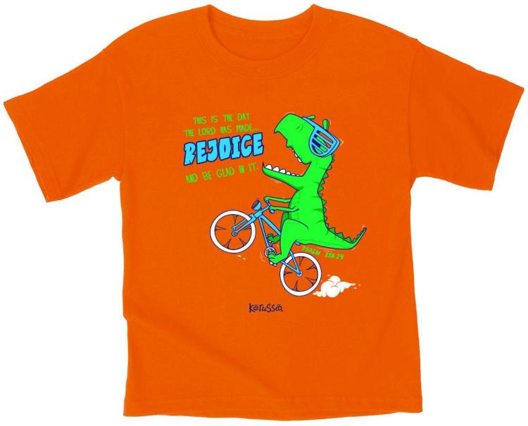 Help kids make a great big roar for the Lord in this fun “Rejoice Dinosaur” Kerusso(R) Kidz Tee in Orange. Kids want fun clothes that breathe and move with them, and you want them to look and feel good at home, school, and play. Meaningful T-shirts by Kerusso Kidz share your child’s love for Jesus with the world everywhere they go.