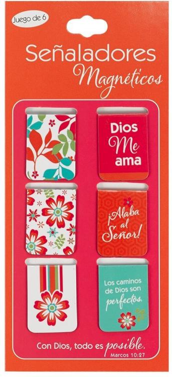 Marque su página con estilo con esta colección de seis separadores magnéticos con diseño floral y colores vivos. El diseño moderno es una mezcla de arte~ hermosos gráficos~ versículos de la Biblia y frases inspiradoras. Cada cartón tiene seis motivos diferentes que hacen juego~ y hay tres cartones en cada paquete. Ideales para compartir con amigos~ regalar en la clase de estudio bíblico~ para poner uno en cada libro~ etc. Económicos~ prácticos y muy atractivos. Cada separador mide 20 x 54 mm.
