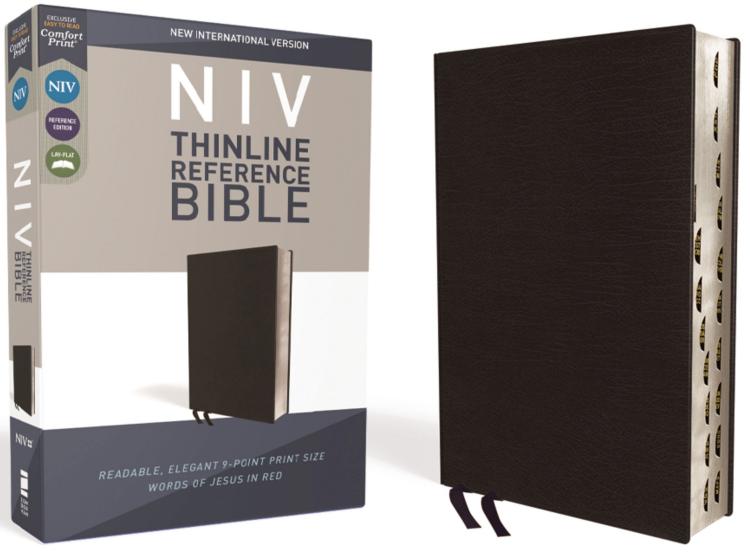 Easy to Read. Easy to Carry. The NIV Thinline Reference Bible captures the depth and beauty of the Bible, in a take-anywhere size. Containing a helpful center-column reference system while measuring less than an inch thick, it is the perfect resource to carry to work, travel, church, and Bible study for on-the-go access to God’s Word. Expertly designed for the New International Version (NIV) text, Zondervan NIV Comfort Print typeface delivers a smooth reading experience that complements the most widely read contemporary-English Bible translation. The full text of the accurate, readable, and clear New International Version (NIV) translationLess than one inch thickCenter-column cross references – a helpful tool for connecting Scripture to other ScriptureSoft, durable leather bindingWords of Jesus in redDouble-column formatPresentation pageTwo satin ribbon markersThumb-indexed editionExclusive Zondervan NIV Comfort Print typeface9.2-point print size