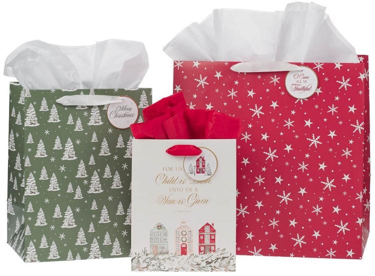Wrap your gifts with nostalgic charm when you use the Home For The Holidays Gift Bag Set. This three-piece set offers three different sizes to accommodate all your presents and to make sure even oddly shaped gifts look beautiful.