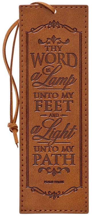Toffee Brown Faux Leather Bookmark: Thy Word is a Lamp Unto My Feet – Psalm 119: