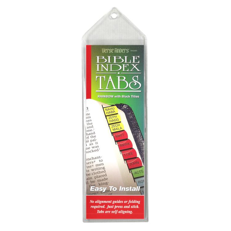 Features: Easy to install – no alignment guides or folding required. Just press and stick. Tabs are self-aligning. Index your Bible in minutes…not hours. Attractive and durable for years of trouble-free use. Horizontal style – reads left to right. Compact 3/8″ design indexes a standard Bible in only 2 rows, making books easier to find.