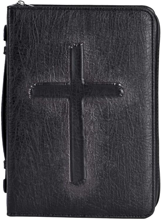 This Black Bible Case Is Made From Polyurethane, In Hard-Shell Style. Has Lay-Flat Construction, With A Cross Zipper Pull. The Zipper Is Non-Rusting And Self-Repairing. This Cover Boasts Nylon Reinforced Stitching Plus A Side Carrying Handle. Inside Is An Elastic Pen Loop To Keep Your Pen Secure. The Front Has A Vintage Embossed Cross. XLarge Size: 10-1/4 X 2 7-1/4.